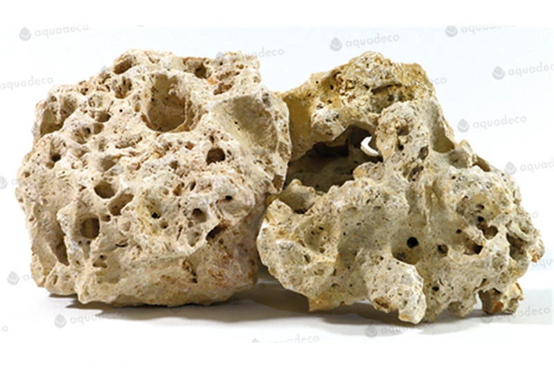 Bitte beachten Sie: Echtes Lochgestein ist kalkhaltig und kann das Wasser aufhärten. Unser Foto ist nur ein Besipielsbild, da es sich um ein Naturprodukt handelt können Formen, Mengen und Farben abweichen!
