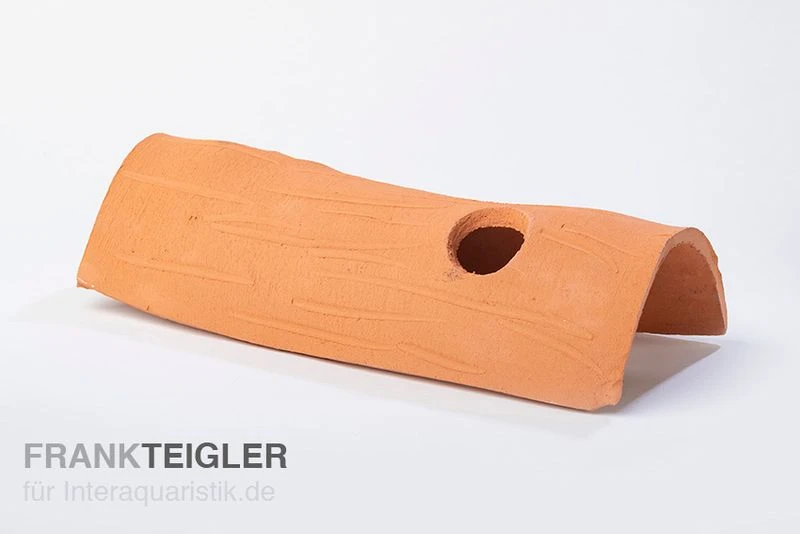 Der halbrunde Tontunnel aus dem Hause Aquariumkeramik ist ein optimaler Unterschlupf für Axolotl. Er ist durchgängig geöffnet und verfügt sogar über 2 weitere kleinere Öffnungen an den Seiten (Bullaugen). Besagte Öffnungen eignen sich wunderbar für die Befestigung von Moosen oder anderweitigen Aquarienpflanzen. Der Tunnel ist 30 cm lang, 8 cm breit und 8 cm hoch. Die kleineren Öffnungen sind zirka 3,5 cm groß.