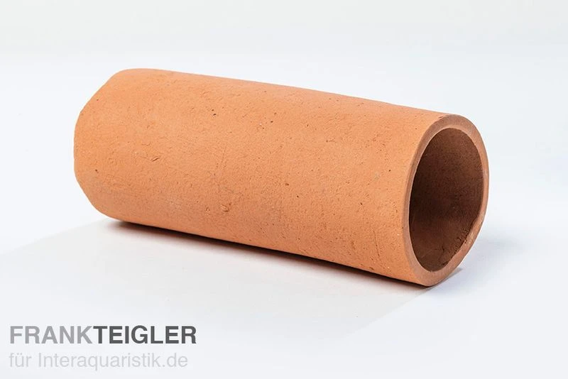 Die tönerne Welshöhle mit Fronteingang aus dem Hause Aquariumkeramik verfügt über eine Länge von ungefähr 18 cm. Die Öffnung selbst besitzt eine Größe von 6 cm bei einem Durchmesser von 5,5 cm.