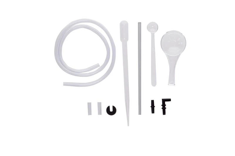 - Zubehörbeutel des Luftanschluss-Sets mit Schlauchadapter und Verbindungsstücken, PVC-Röhrchen, Ausströmerstein, Luftschlauch, Gummistopper