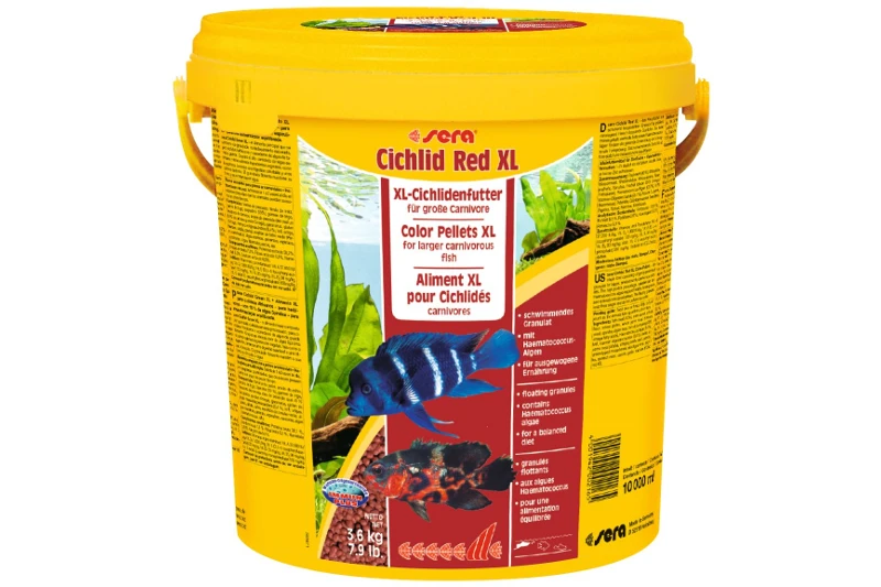 Sera Cichlid Red XL ist das aus schonend hergestelltem Granulat hergestellte Hauptfutter für größere und große, vorwiegend carnivore Cichliden und Allesfresser.